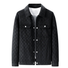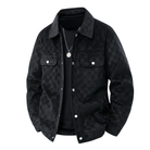 The jacket features a workwear-inspired silhouette with a checkered pattern that adds texture to the black base. Suitable for casual outings and everyday wear.