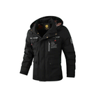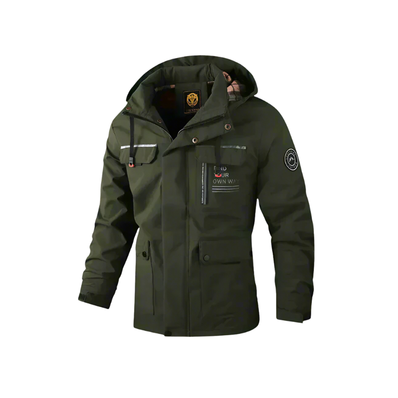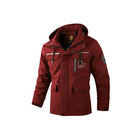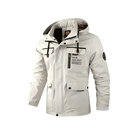 Gear up for the cold season with this hooded men's jacket. Designed with an adjustable hood, multiple secure pockets, double snap buttons and zipper. Whether you're hiking mountain trails, commuting through the city, or exploring new places, this jacket keeps you warm and stylish every step of the way.