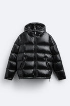 This padded jacket is designed to keep you warm and dry during cold, rainy days. With its water-repellent finish and padded hood, it offers practical insulation while maintaining a modern look.
