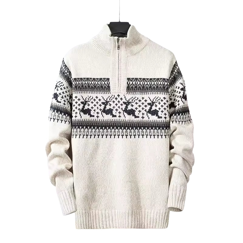 Men’s Knitted Half-Zip Jumper with Patterned Design