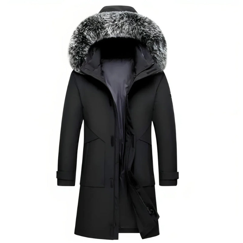 Men’s Long Parka Coat with Hood Trim