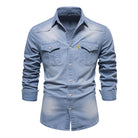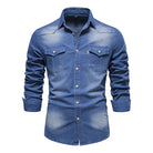 This denim shirt features a vintage-inspired wash and a relaxed fit, offering a versatile option for everyday wear. Designed with a button-down front, chest pockets, and cuffed sleeves, it pairs easily with jeans or trousers for a casual look.