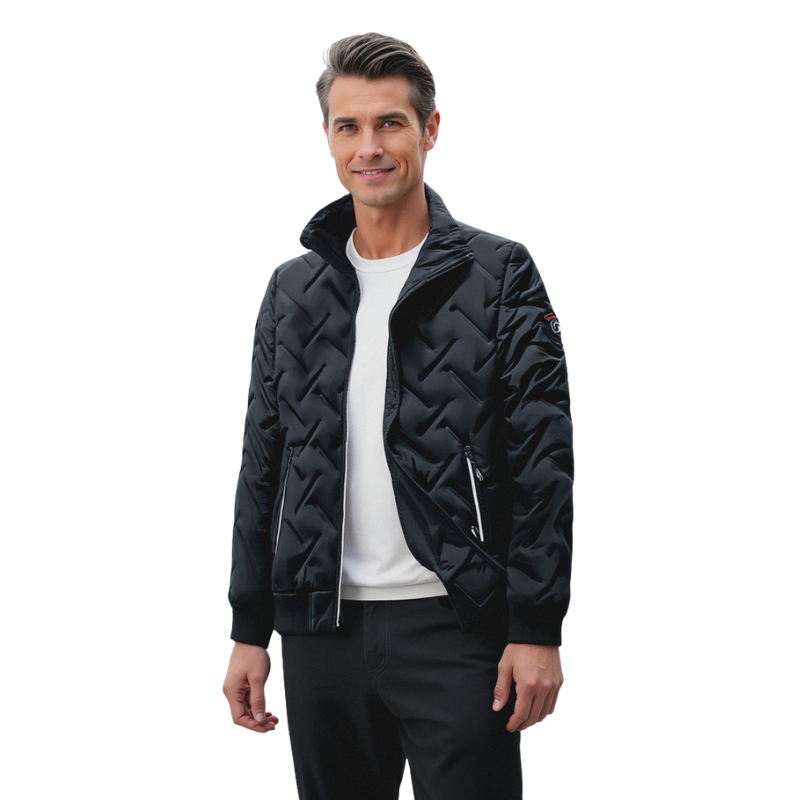 This versatile jacket is designed you warm throughout fall and winter. The dual zippered side pockets keep your hands warm, with sleek black contrast detailing that adds a sporty touch. This jacket is suitable for urban commutes, weekend adventures, or casual social occasions.