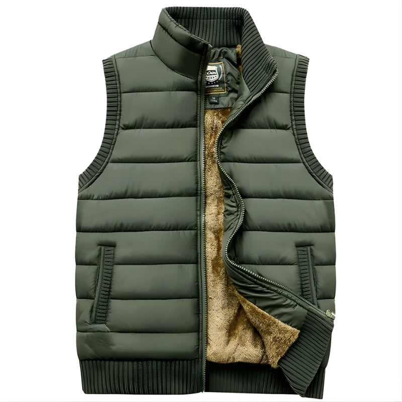 This men’s puffer vest is designed for added warmth and layering during cold days. The quilted outer shell helps trap heat, while the faux fur lining offers insulation. A full front zipper, ribbed collar, hem, and arm openings. Two welt pockets provide space for small essentials.