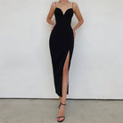 The V-Neck and Spaghetti Straps Dress offers a flattering and feminine fit with a bodycon pencil silhouette. The V-neckline and mid-calf length strike the perfect balance between elegance and ease, making it a versatile choice for various occasions.