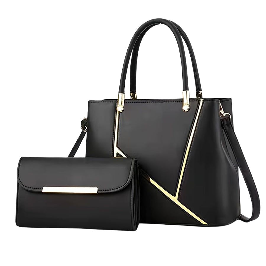 Women's Stylish Two-Piece Carryall Set with Gold-Tone Accents