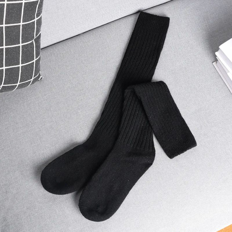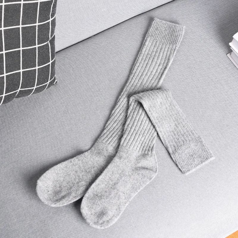 Knee-high socks in a fine-gauge rib that sits close to the leg and fits neatly under boots. The yarn blend is warm for chilly days, while the stretch helps the shape recover after wear. Suitable for commuting, lounging at home, and winter errands.