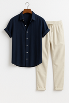 Shirt and trousers set in a lightweight woven fabric. The button-up shirt has a relaxed fit and clean lines, paired with trousers that have a simple shape and subtle structure. Suitable for spring and summer wear, the set offers a straightforward, versatile silhouette.