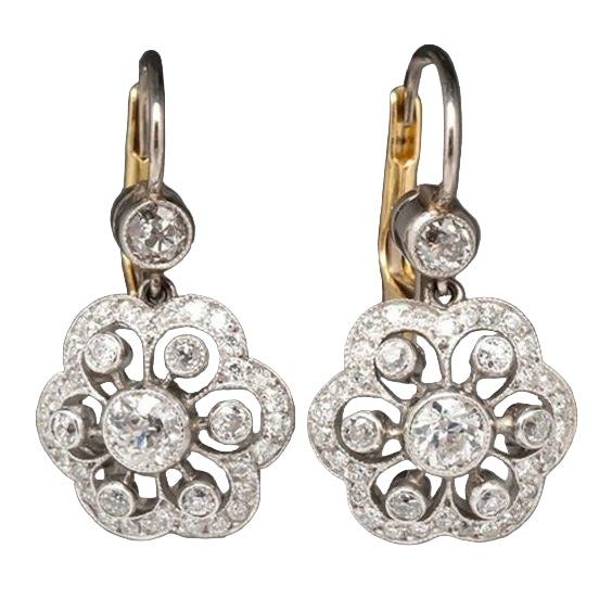 Floral Crystal Drop Earrings with Gold-Tone and Silver-Tone Design