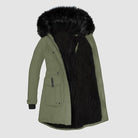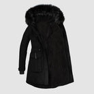 - Hood with inner fur trim.