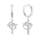Hoop Earrings with Stone Accent with Cross Drop Pendants