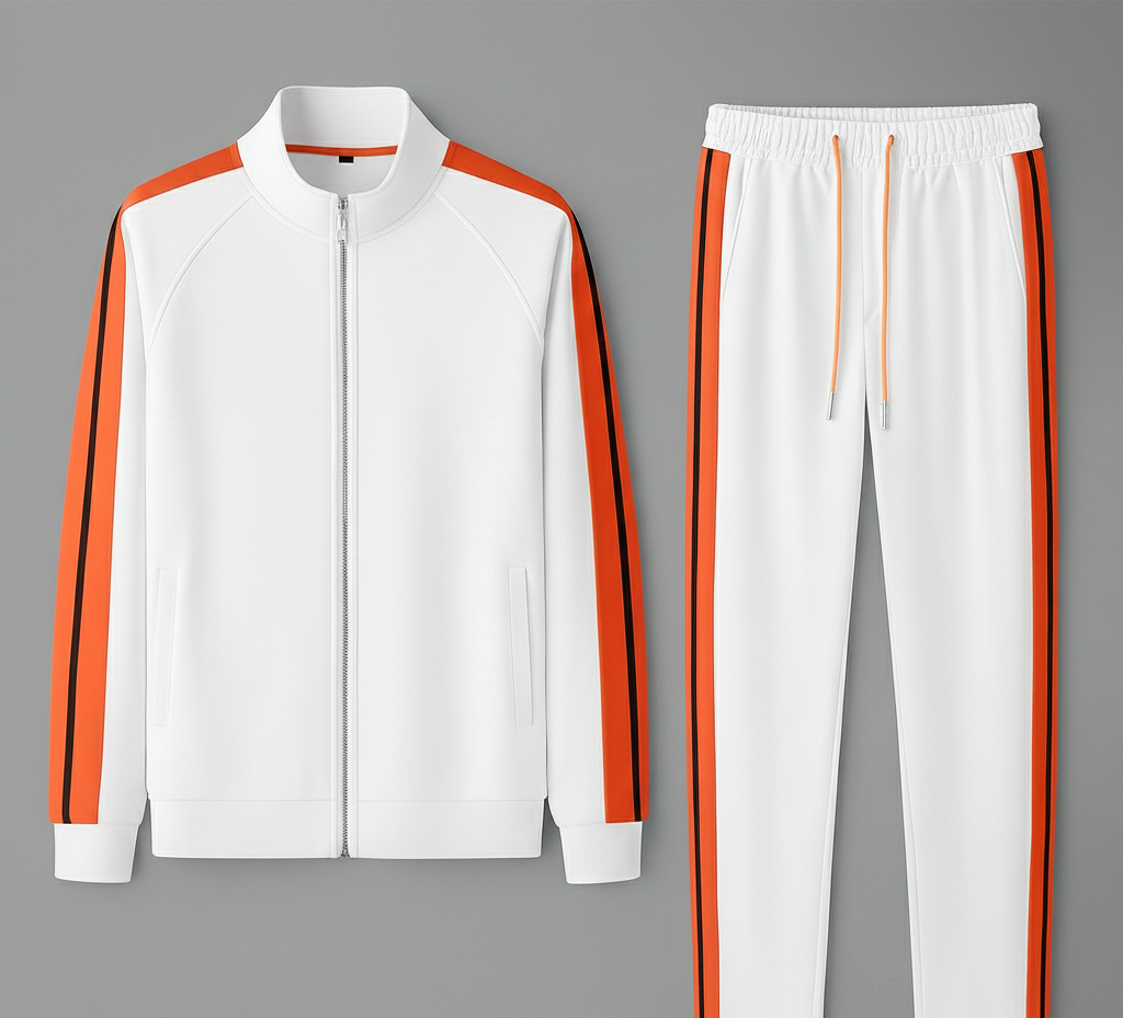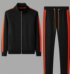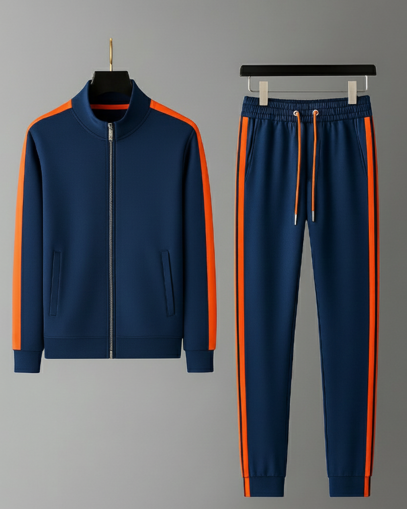This men’s tracksuit set blends a clean sporty style with a modern shape. The jacket and trousers share matching trims that give the set a unified edge. The top includes a front zip and side pockets, while the trousers come with an adjustable waist cord for day-to-day wear. A choice for anyone wanting a neat, coordinated set.