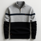 This sweater is made from a medium-weight fabric that provides covering without bulk. It boasts clean lines and is appropriate for putting on over other clothes. The quarter-zip fastening detail is a tidy line that works well for many outings. The cuffs and bottom border are knitted to keep the item's form. This top is a suitable item for travel or weekend trips.