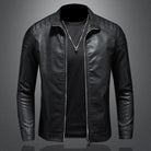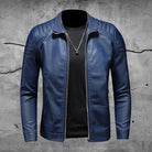 Men's Leather Full-Zip Stand Collar Bomber Jacket