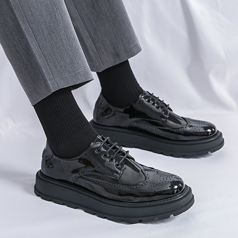 Men’s Wingtip Brogue Oxfords – Glossy Green with Comfortable Fit
