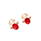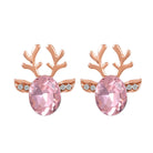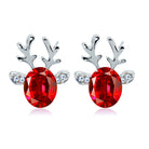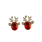 These stud earrings reindeer design crafted with an oval crystal forming the center. The antlers and ears are shaped, while small clear stones accent the ear area for added detail. The bright crystals creates a seasonal accessory suitable for holiday events.