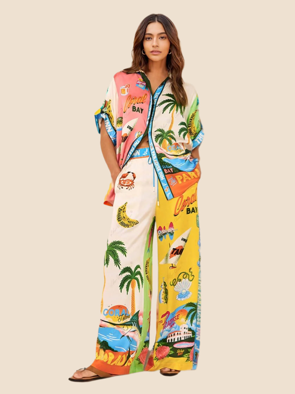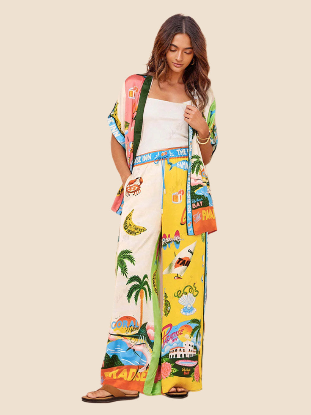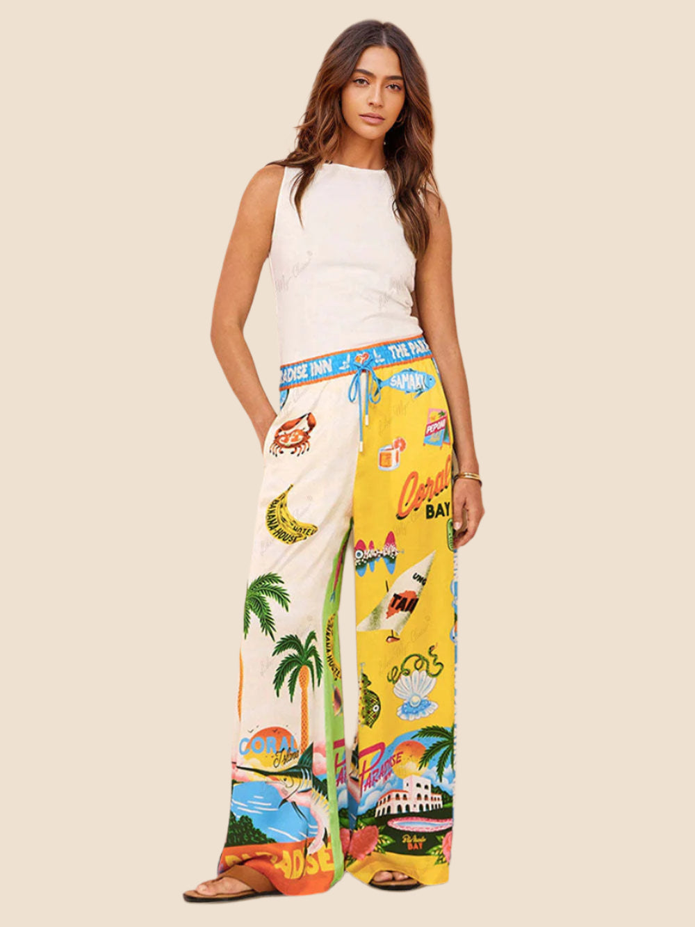 Women’s Printed Wide Leg Trousers – Elastic Waist, Ankle-Length for Summer & Holidays