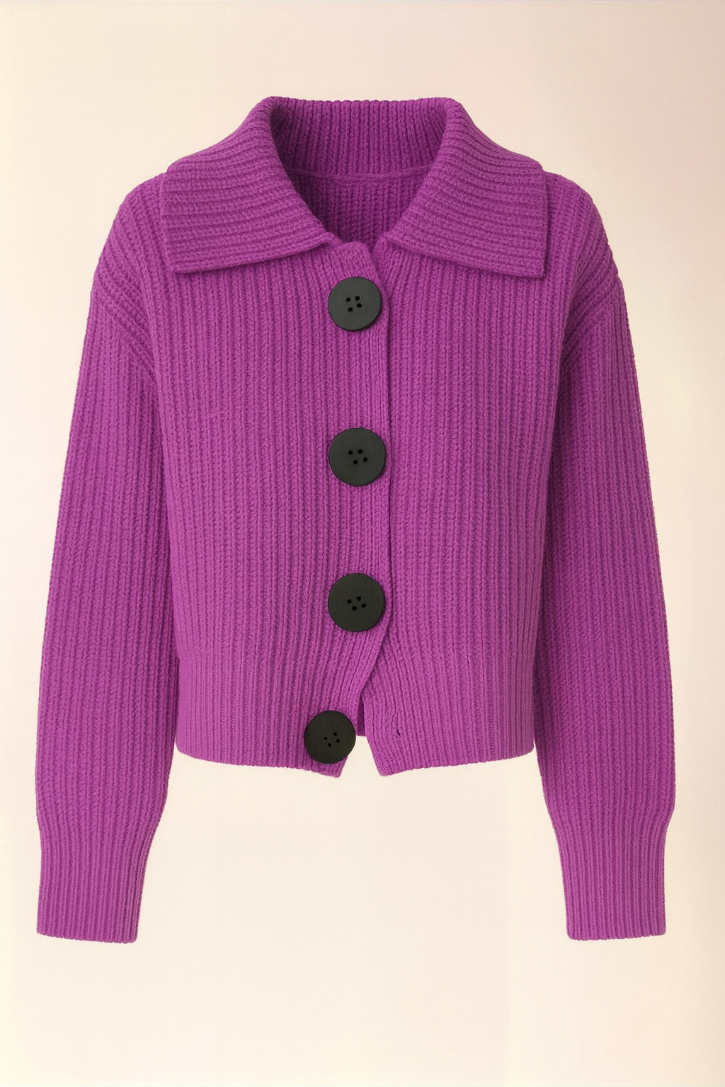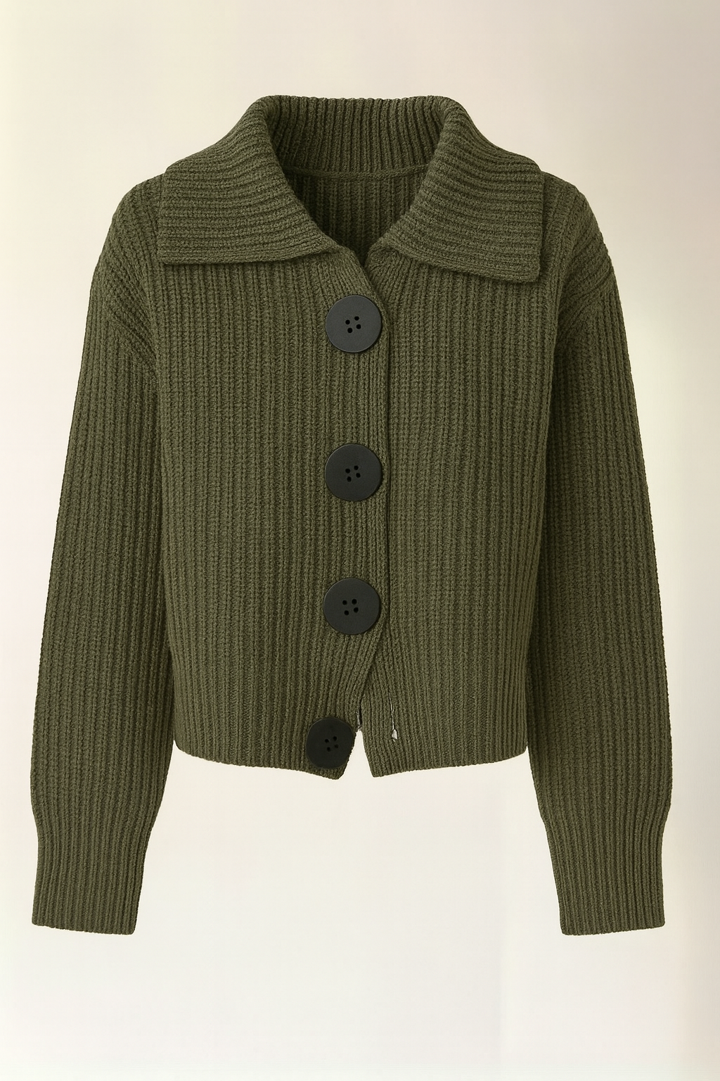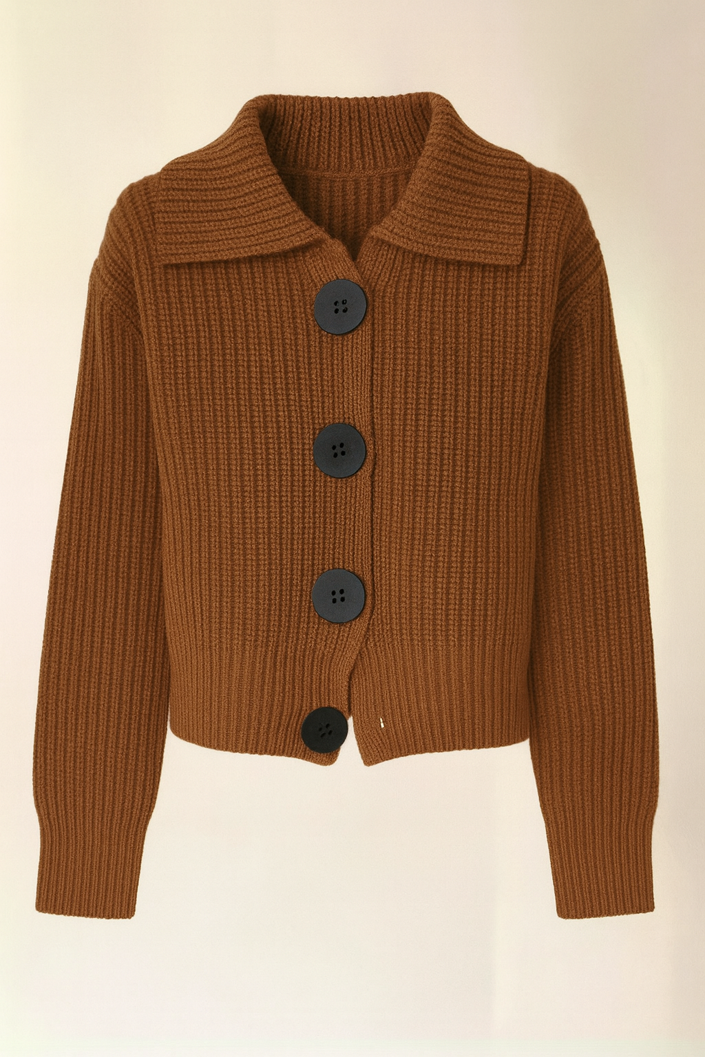 Women’s Crop Knitted Collared Cardigan with Big Buttons Design