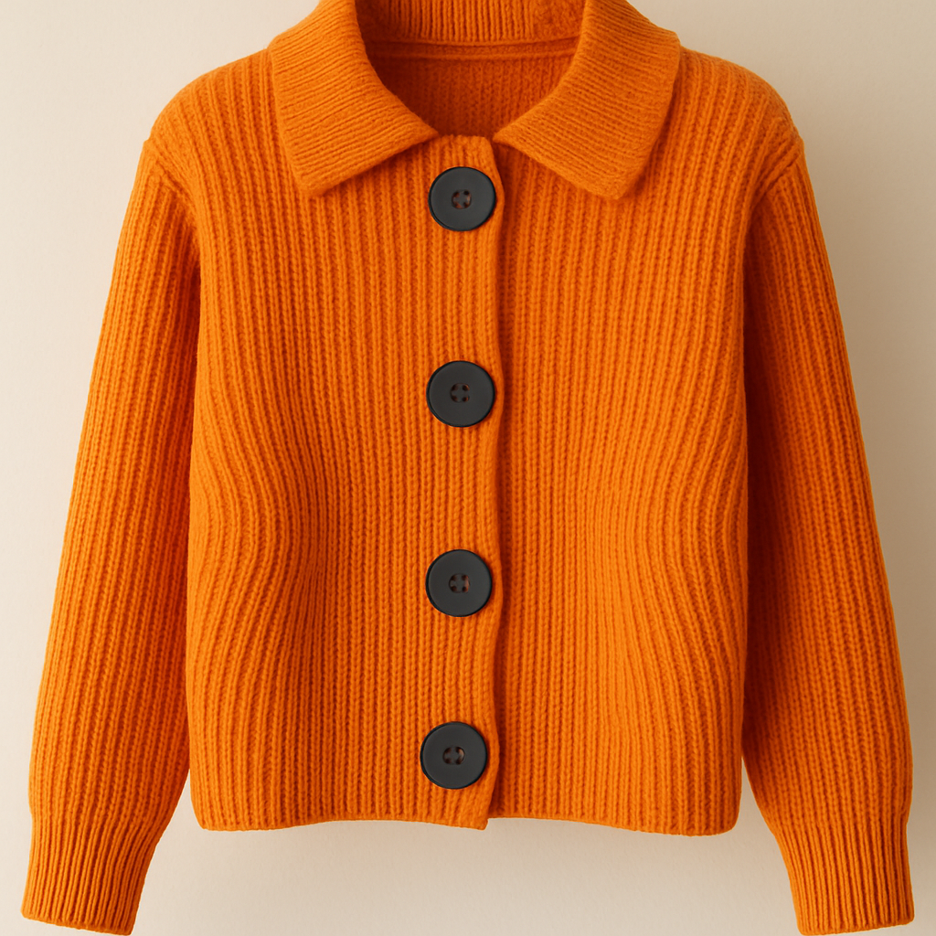 This women’s cardigan brings a neat blend for everyday style. The ribbed pattern and the large buttons give it a modern edge. It works well as a layer for cooler days and pairs effortlessly with trousers, skirts or dresses.