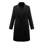 This coat features a streamlined fit with full-length sleeves, a fabric suitable for cooler weather, and a design that works for layering. It is suitable for everyday wear, commutes, or more formal occasions.