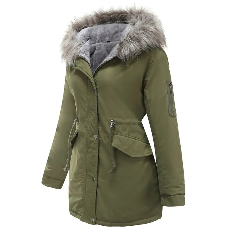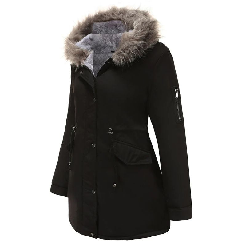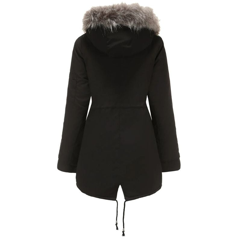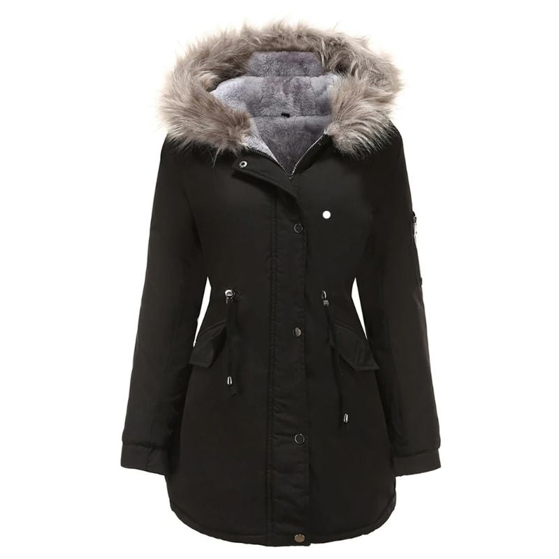 Women’s Long Winter Jacket with Faux Fur Hood