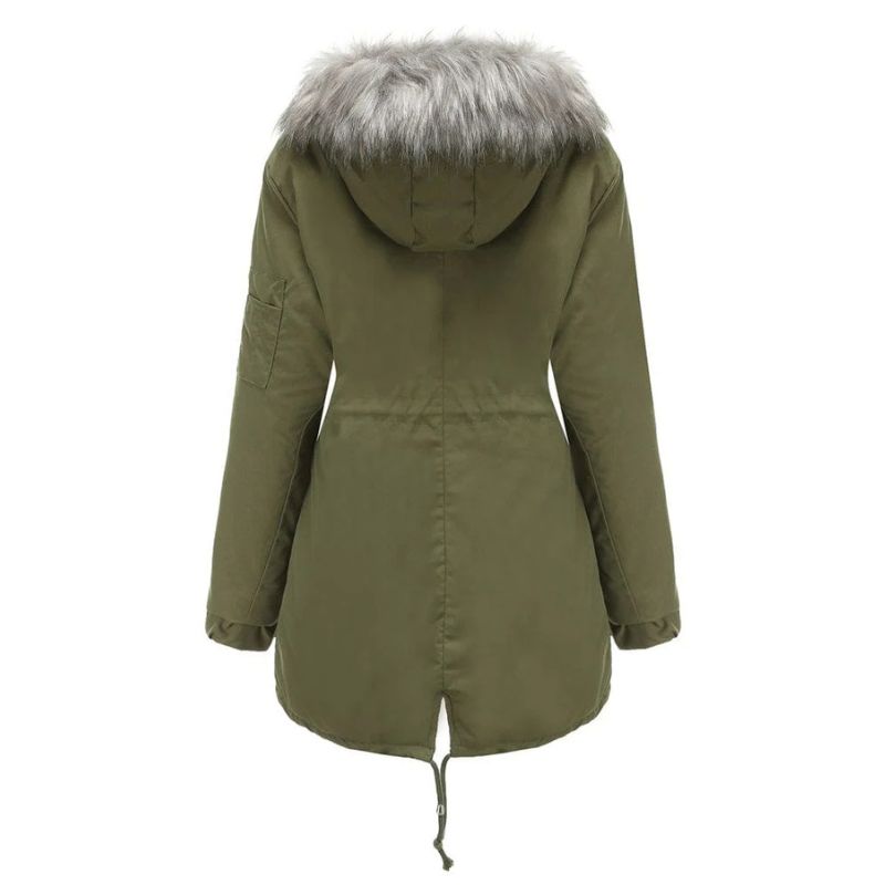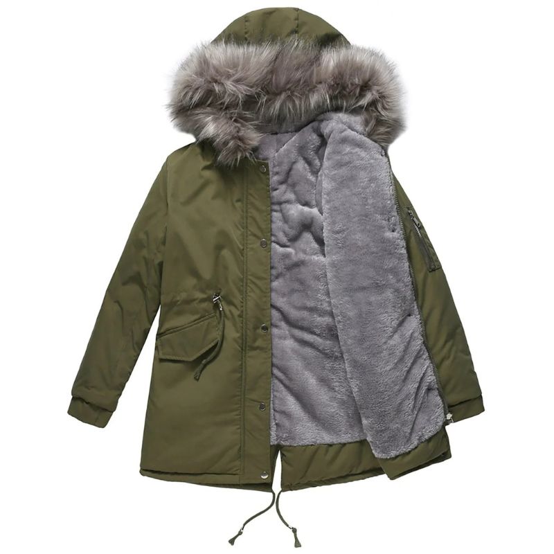 - Hood with faux-fur trim for added insulation
