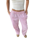 These women’s pants have a straight-leg silhouette with a pull-on waist. The balanced cut suits home wear and everyday downtime. Two side pockets keep essentials close while maintaining a clean line.