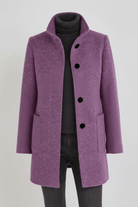 This women’s coat brings a neat stand-collar shape that frames the neckline and adds a clean wear to your cool-season style. The front buttons and long sleeves create a layer that works well for workdays, travel, and weekend plans.