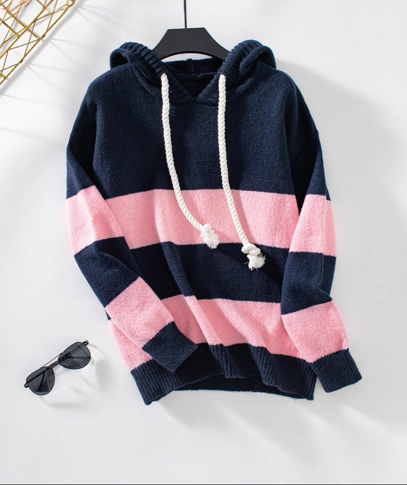 This women’s striped hoodie offers an outline suited for daily plans and layering through cooler seasons. The wide stripe pattern brings a style, while the drawstring hood adds a detail. The ribbed edges help keep the shape neat during wear.