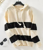 Women’s Striped Hoodie with Drawstring and Long Sleeves