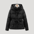 This women’s puffer jacket brings a shaped outline with its stitched panels and adjustable belt. The hood adds extra coverage on cold-season days, while the padded body helps you ready for changing weather. Its front fastening and practical pockets make it suitable for day-to-day wear, commuting, or long walks.
