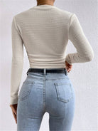 Women’s Waffle Pleated Top | Solid Colour Long Sleeve Style for Everyday Wear