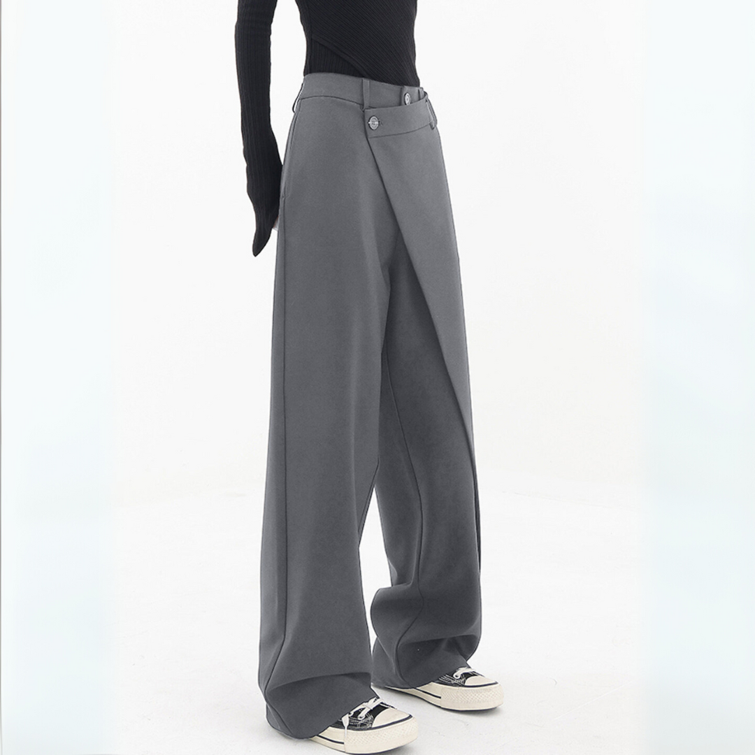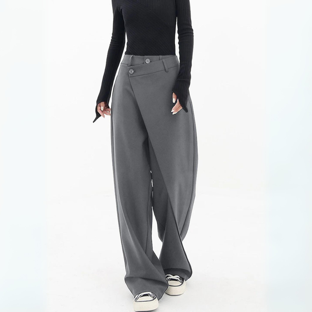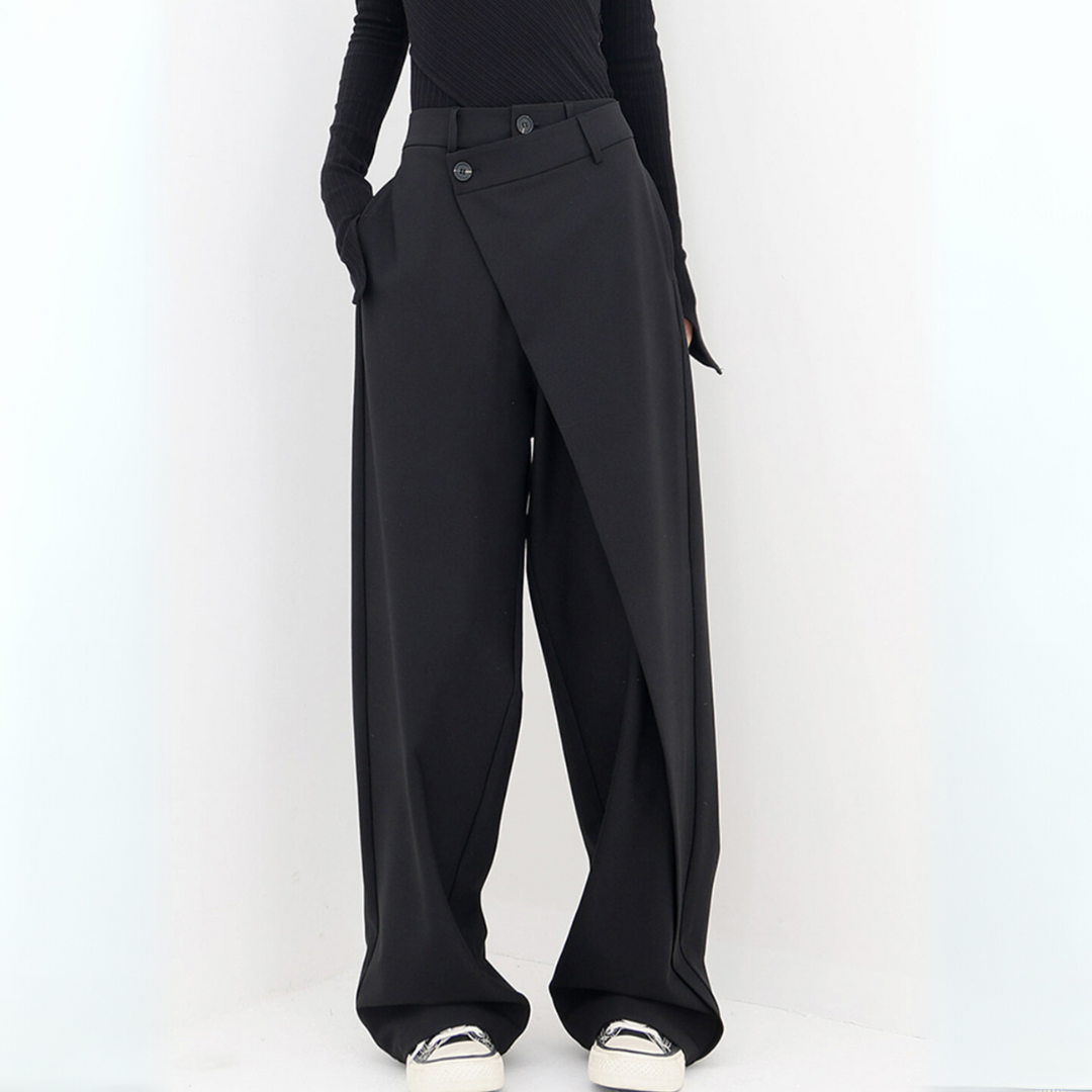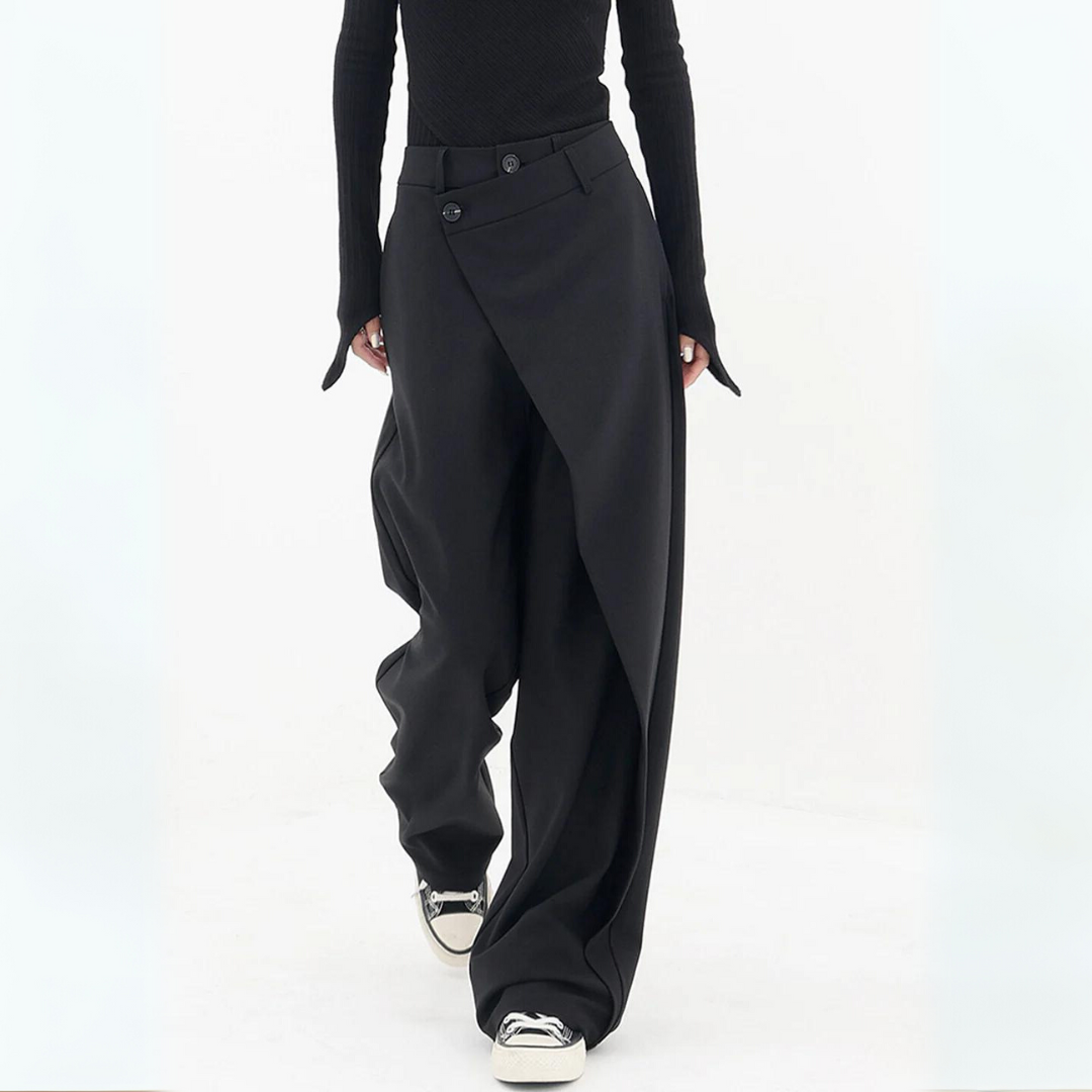 These trousers are made for stylish appearance with flowing shape and asymmetric design, these trousers add a different detail to your wardrobe. They are fitting for both plain time and daily wearing. They are made from a material that provides a plain sensation against the skin.