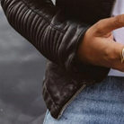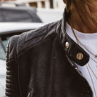 A jacket made from soft-feel vegan leather with a structured collar and front zip closure. Features a defined silhouette suitable for layering in transitional seasons.