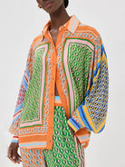 Women's Colourful Balloon Sleeve Button-Down Blouse | Loose Fit Printed Top for Everyday Wear