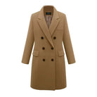 This long women's coat is an outer layer designed for use during the winter season. It has a large fold-down collar and a button closure at the front. The length of the coat offers coverage for the body, against low temperatures. This is a suitable choice for wearing over work clothing or for any formal outing.