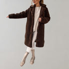 This long coat is the fitting item for cold days, offering plainness and added heat. The coat combines a traditional design with plain wearing. It is the fitting item for women who do not want to lose a neat style. The item's inner material gives added hot to cold weather. The design includes wide pockets and a plain collar for plain wearing.