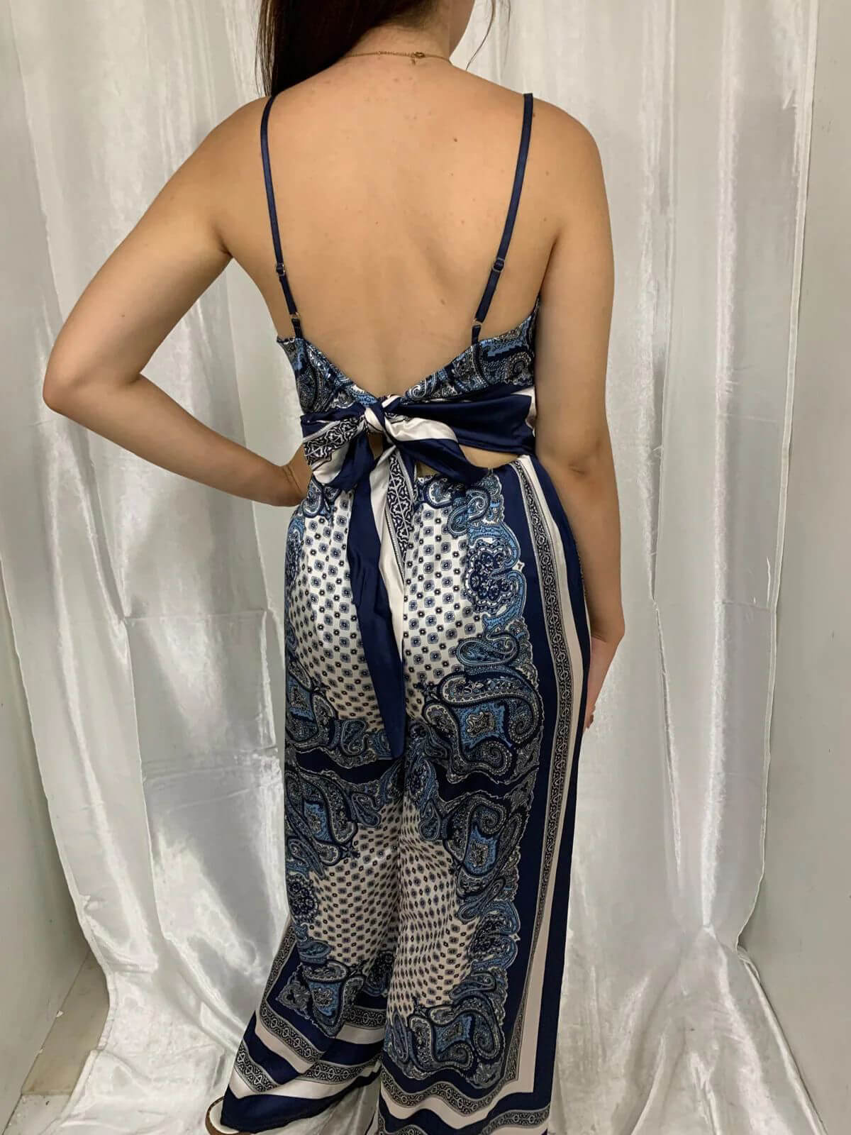 - Top: Bandeau with adjustable straps and tie-back fastening