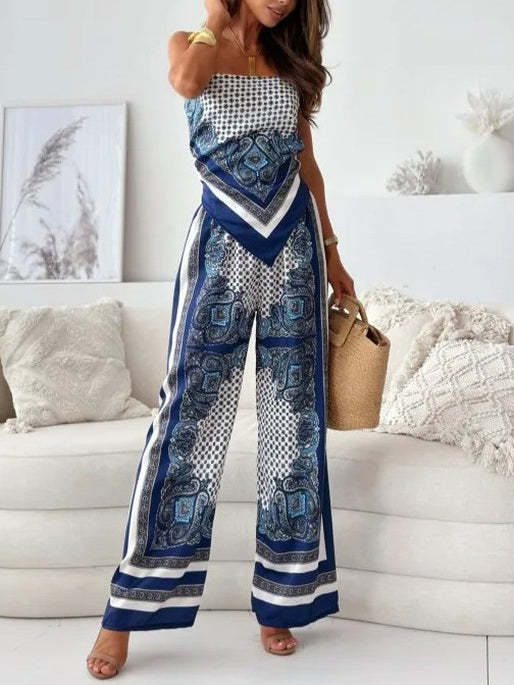 Women’s Floral Two-Piece Set | Bandeau Top & Printed Trousers for Day & Evening Wear