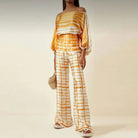 Women’s Two-Piece Co-Ord Set – Off-Shoulder Crop Top & Wide-Leg Trousers | Summer Outfit