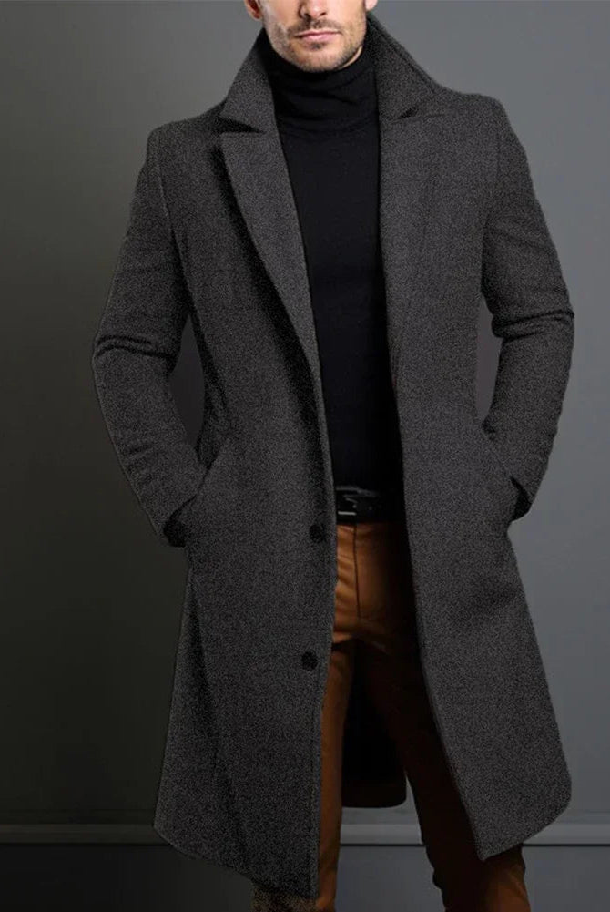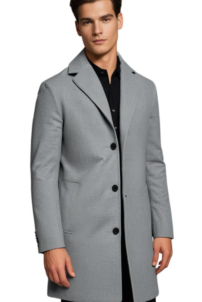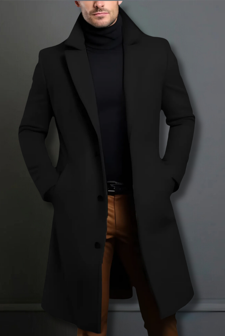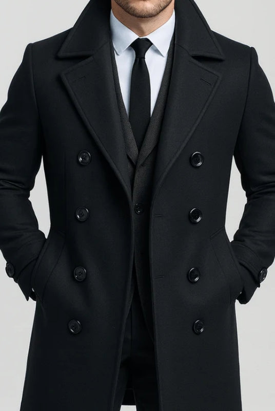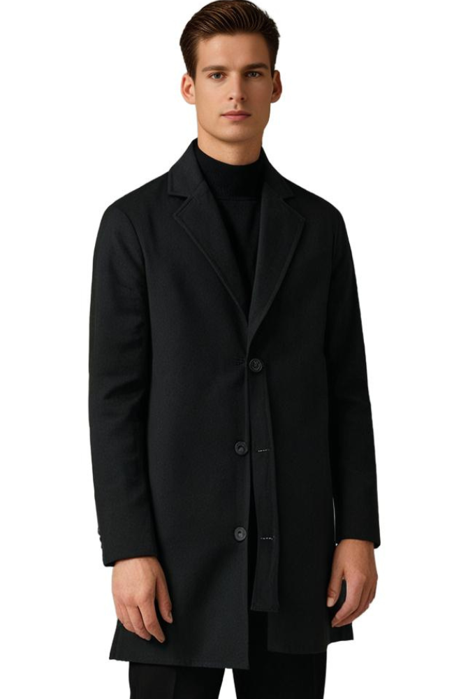 Men's Tailored Wool Overcoat – Classic Long Winter Coat for Smart or Casual Wear