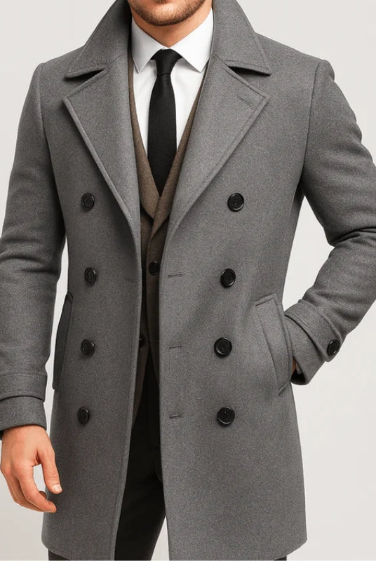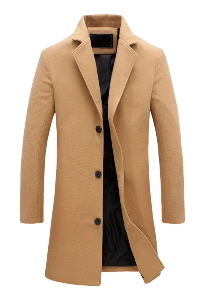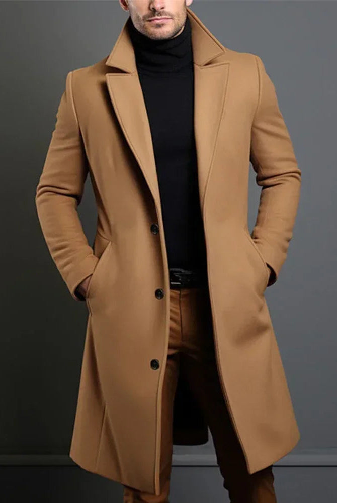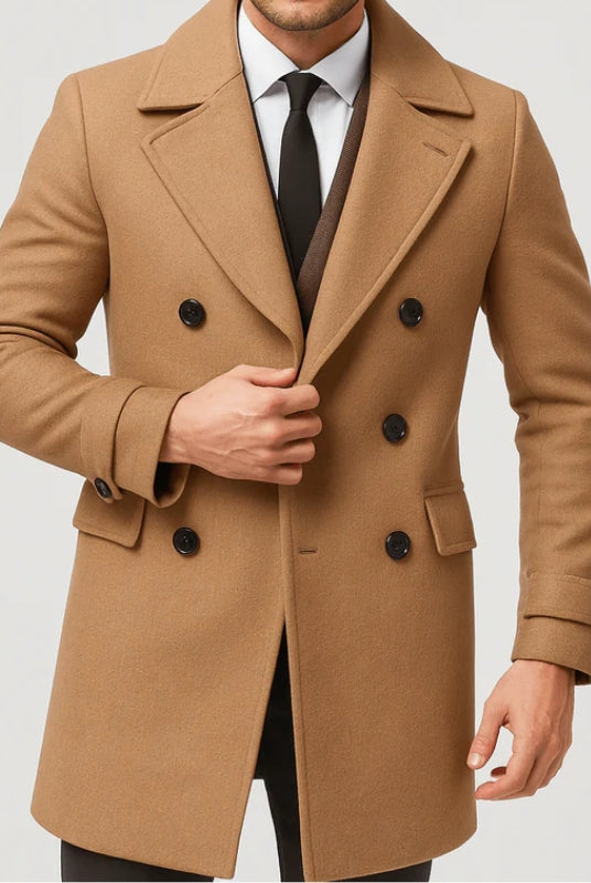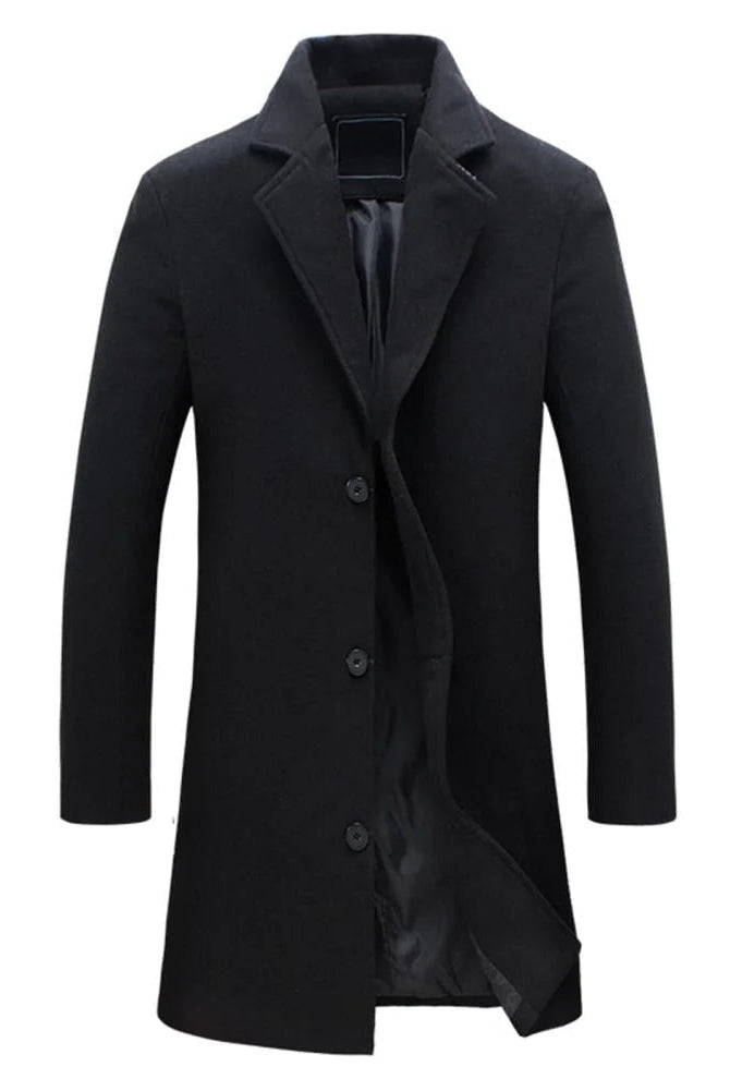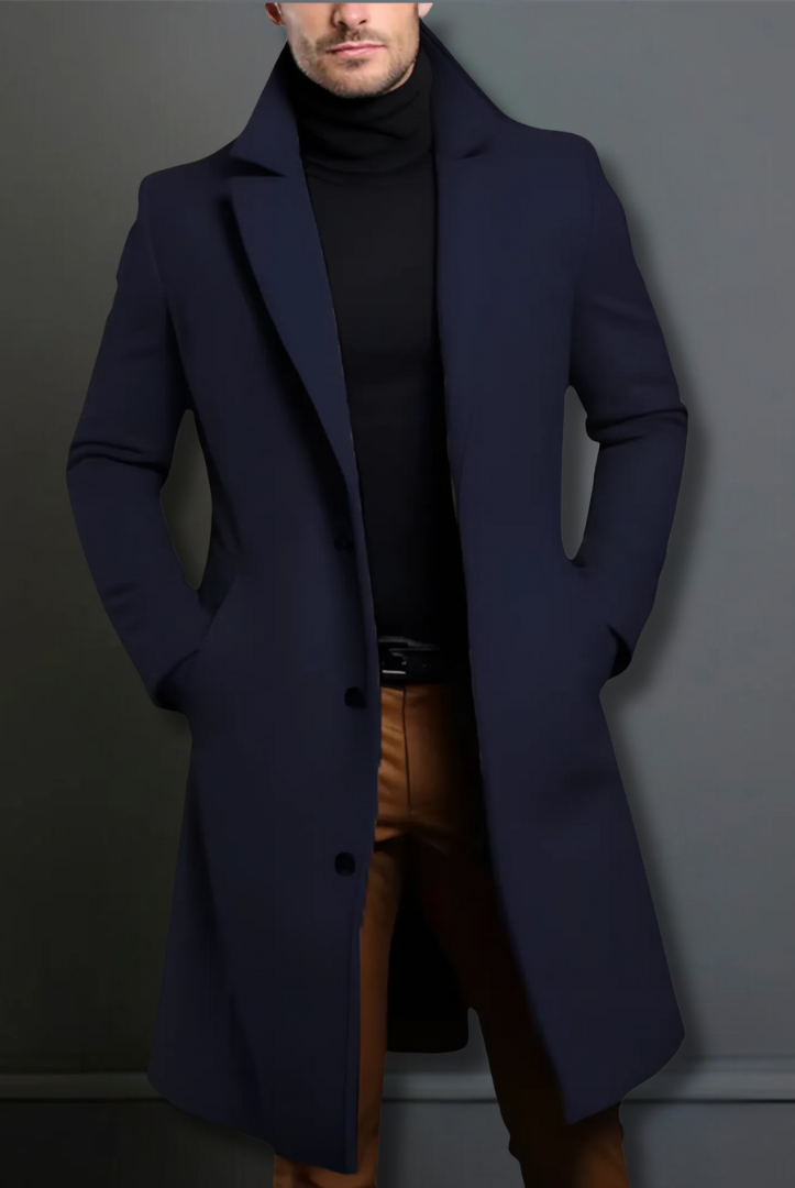 Men's Tailored Wool Overcoat – Classic Long Winter Coat for Smart or Casual Wear