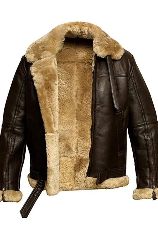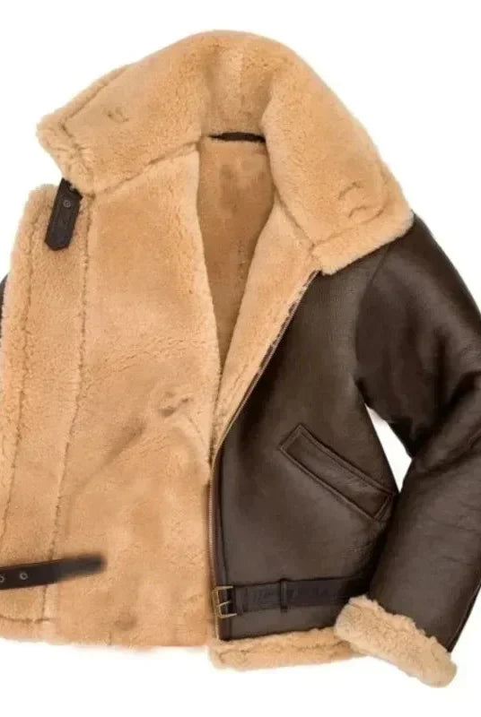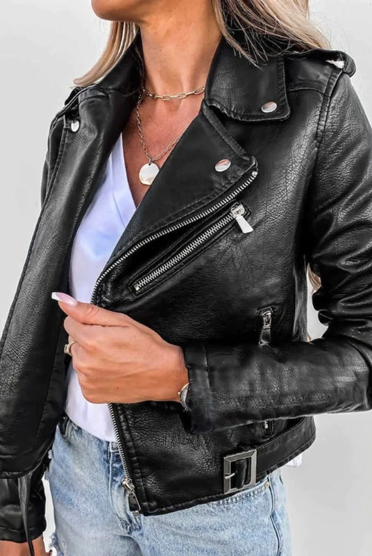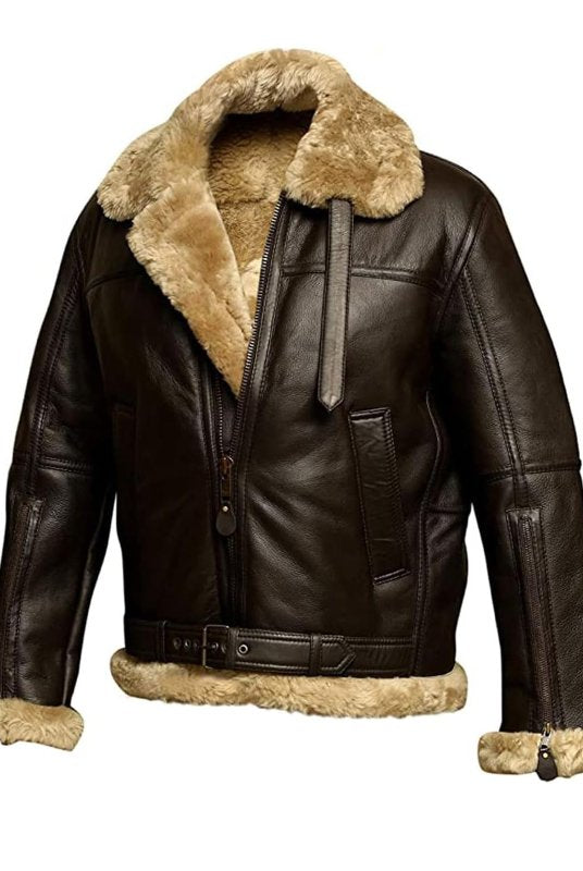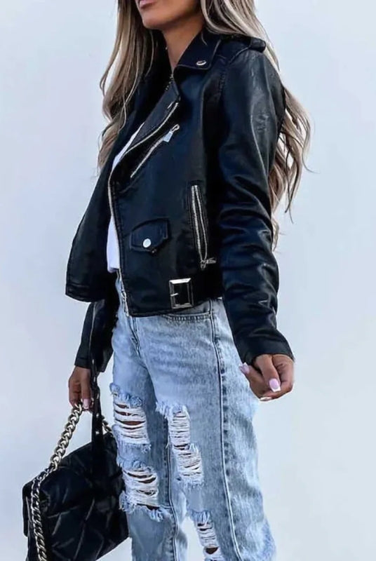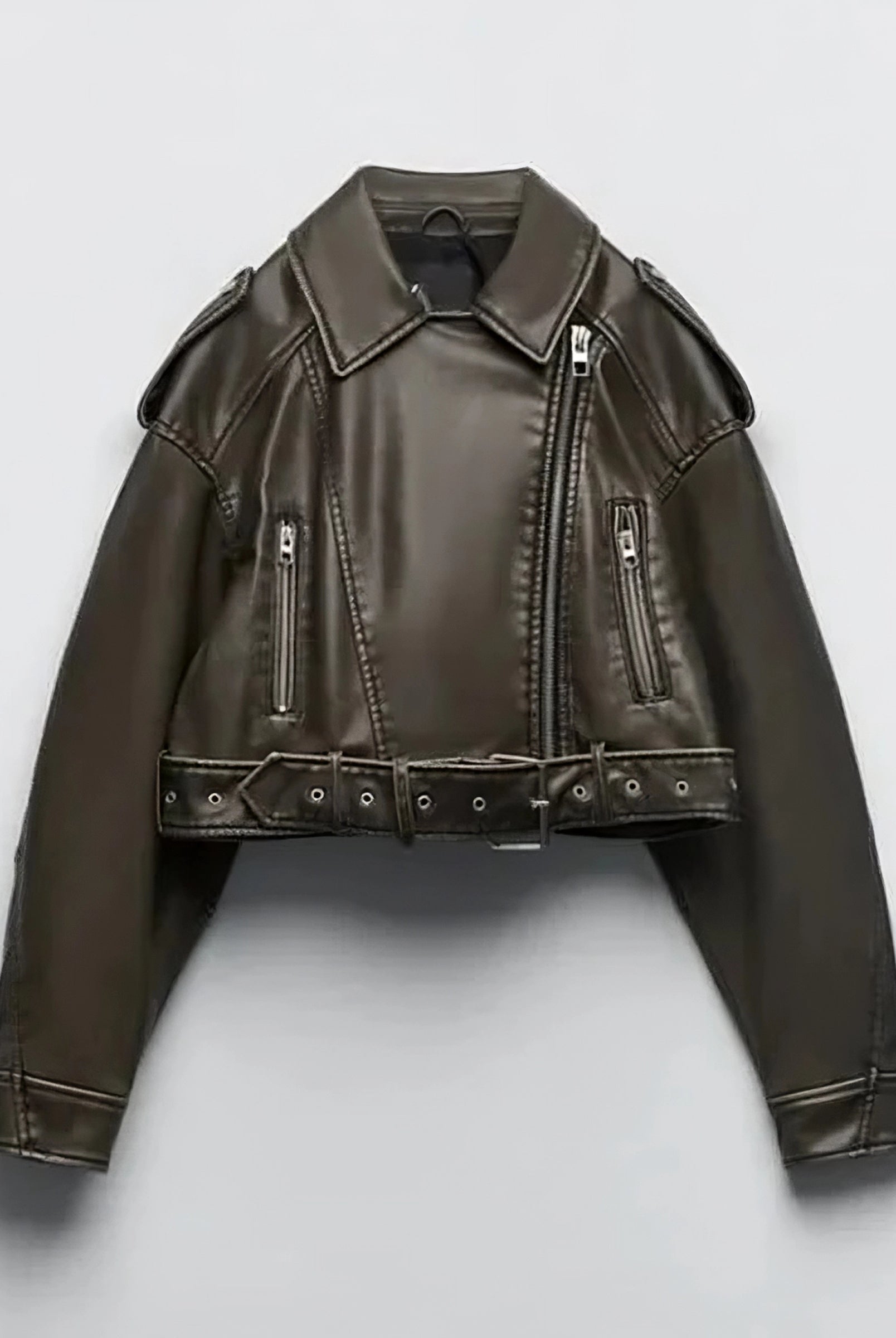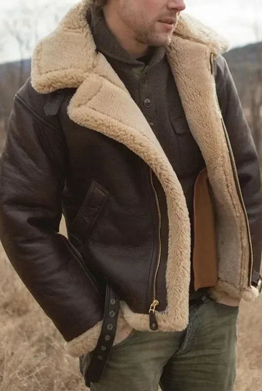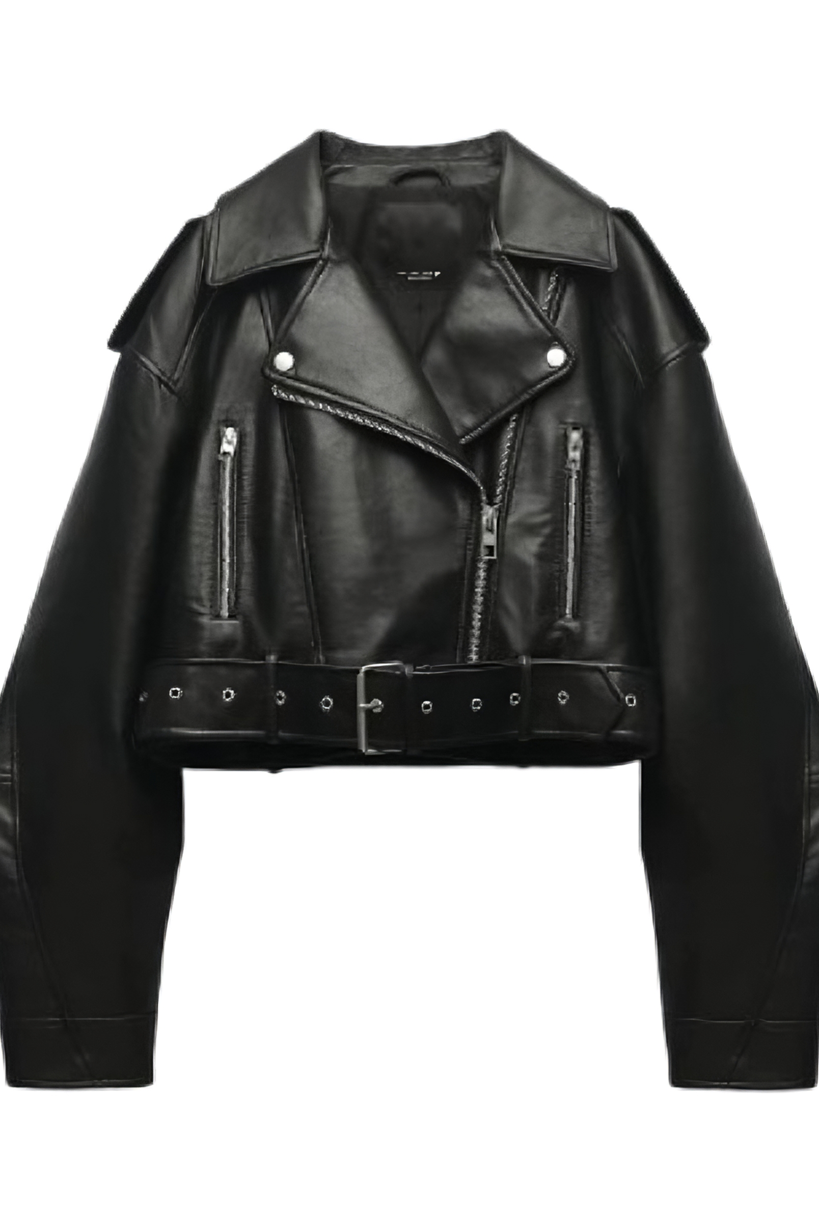 Men’s Leather Biker Jacket – Zip-Up with Stand Collar and Pockets