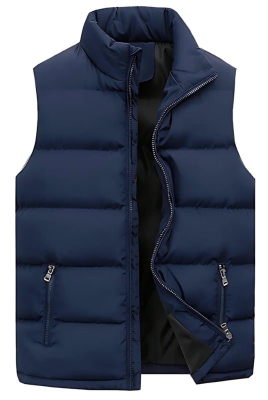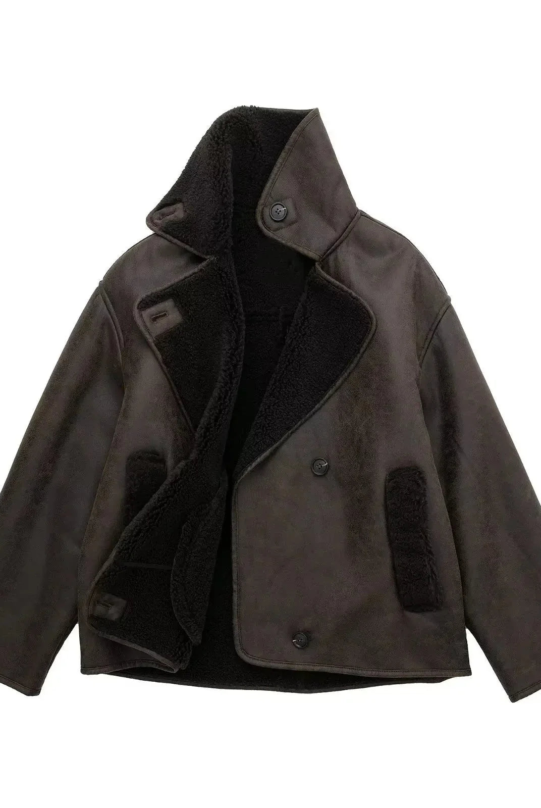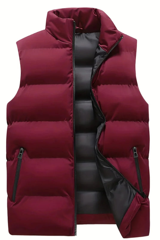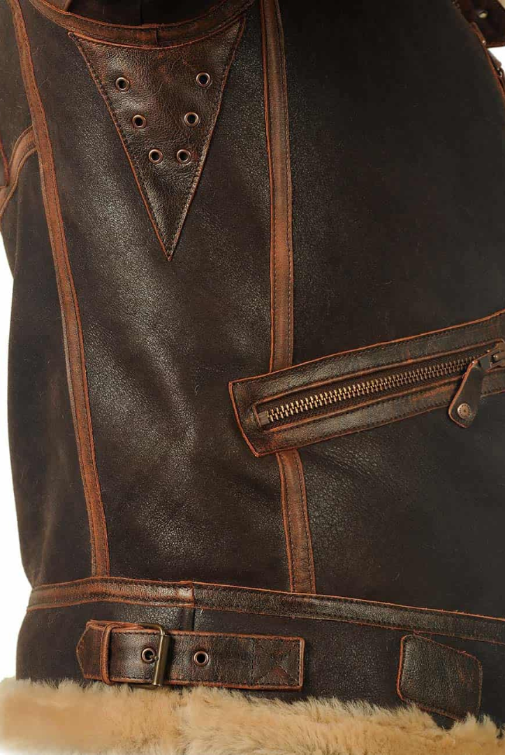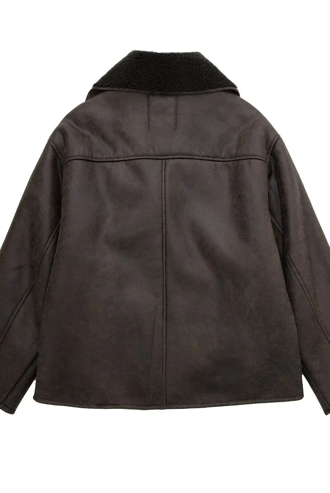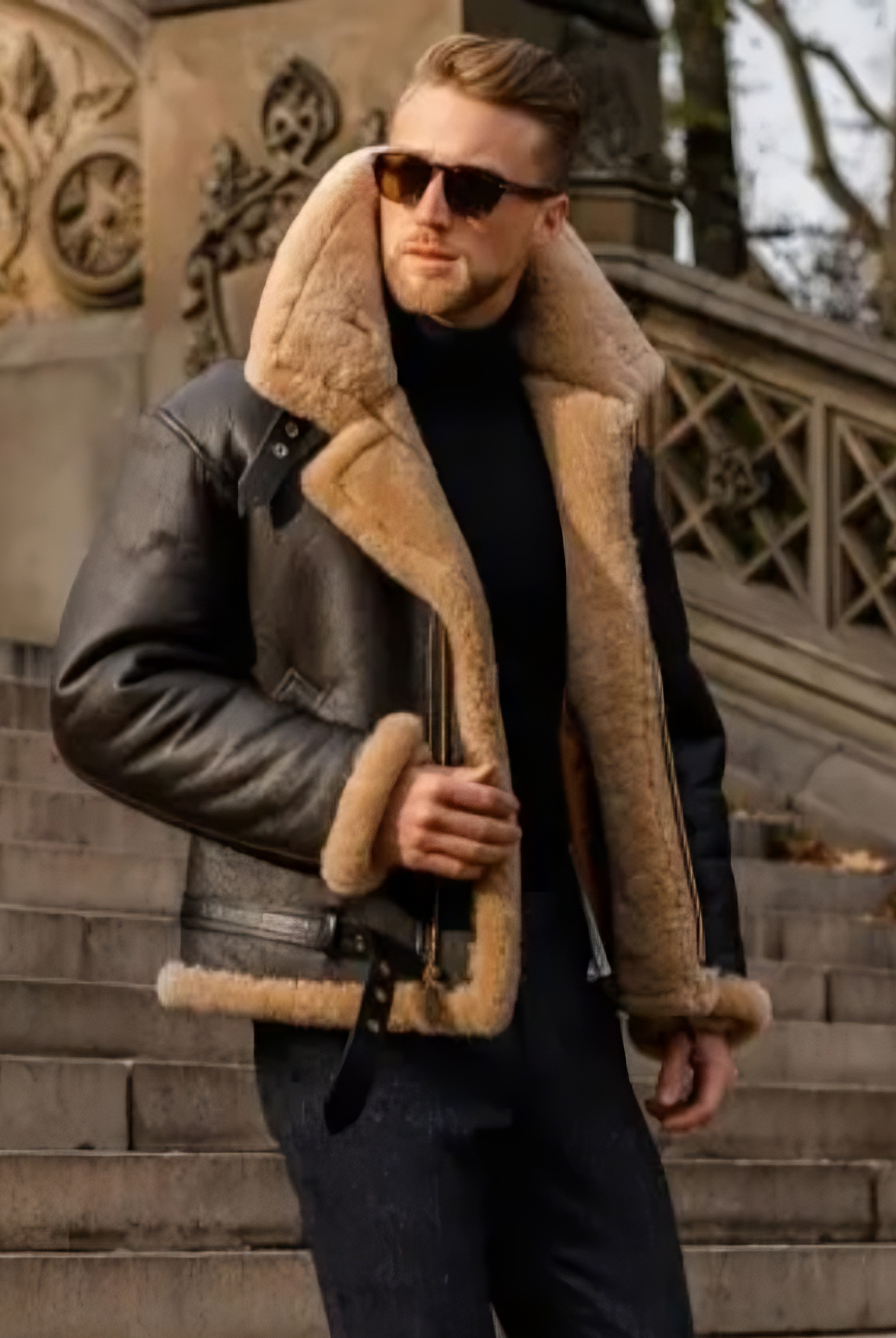 Men’s Leather Biker Jacket – Zip-Up with Stand Collar and Pockets