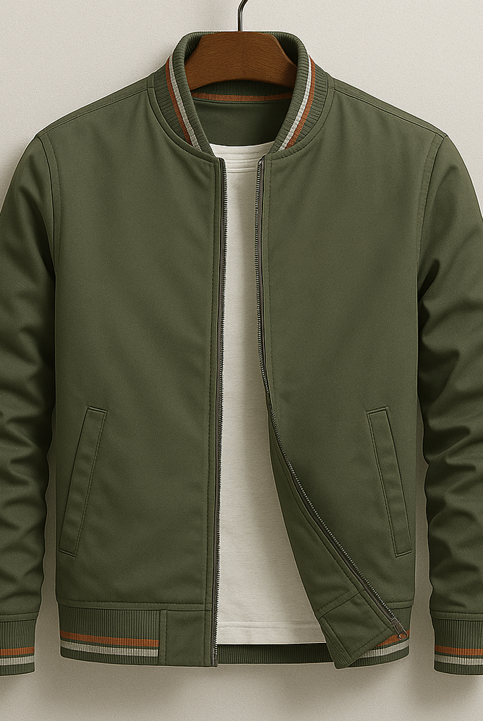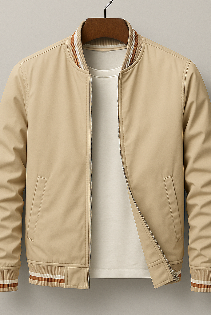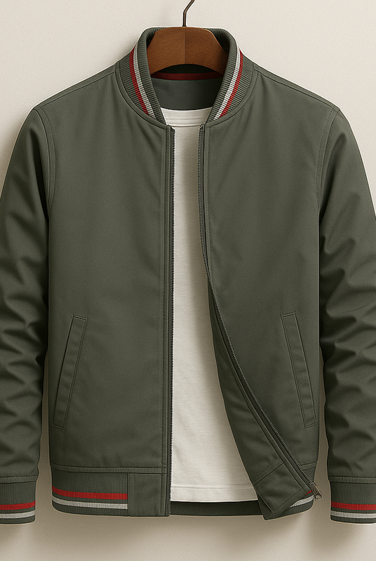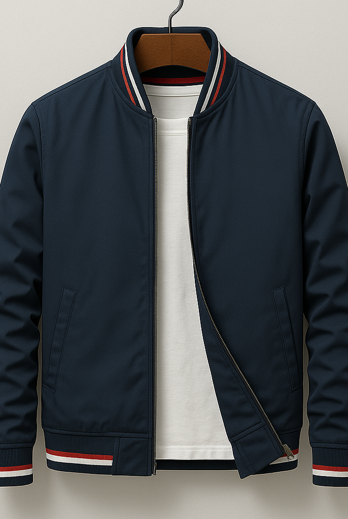 Men’s Bomber Jacket with Stripe Detail - Lightweight Casual Layer